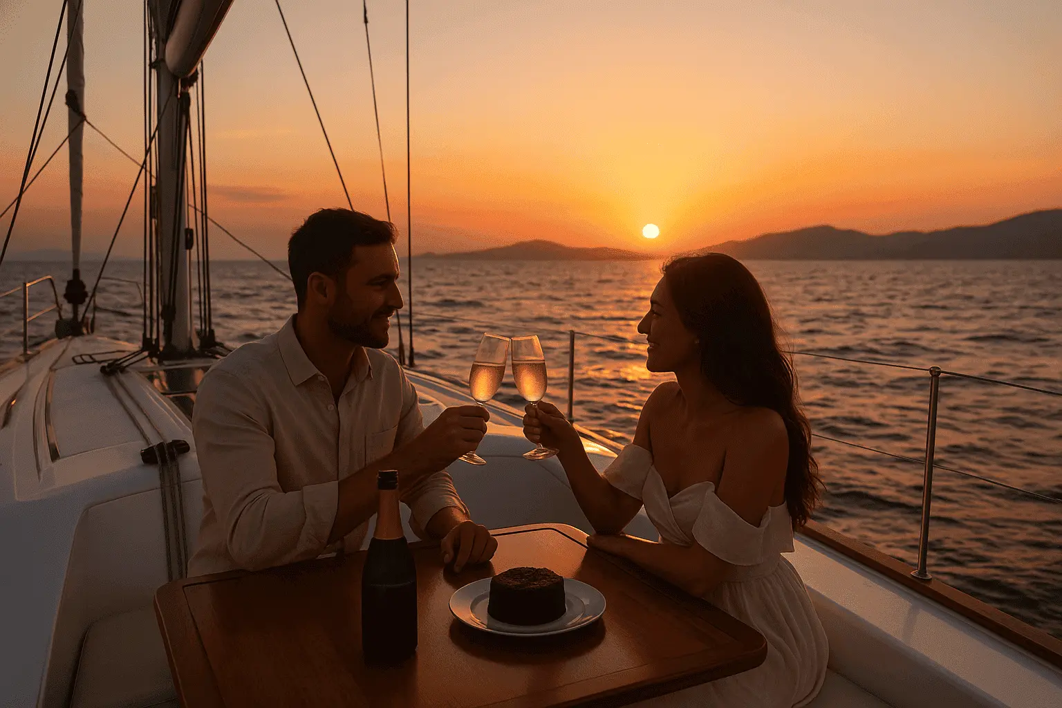 - Private Dinner at Sea: Cap the evening with a romantic, onboard dinner under the stars, savoring local flavors and reliving your perfect moment.