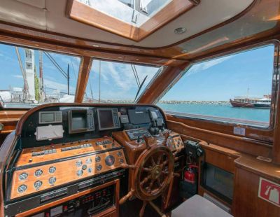 Her interior is one of the highest quality workmanship and wood offering a relaxing and luxurious atmosphere. Beautiful and stylish will offer to her guests the ability to relax or dine without losing touch with the outside environment. All 6 cabins offer a fridge, a cd-player, a safe and air conditioning for comfortable and relaxed living.