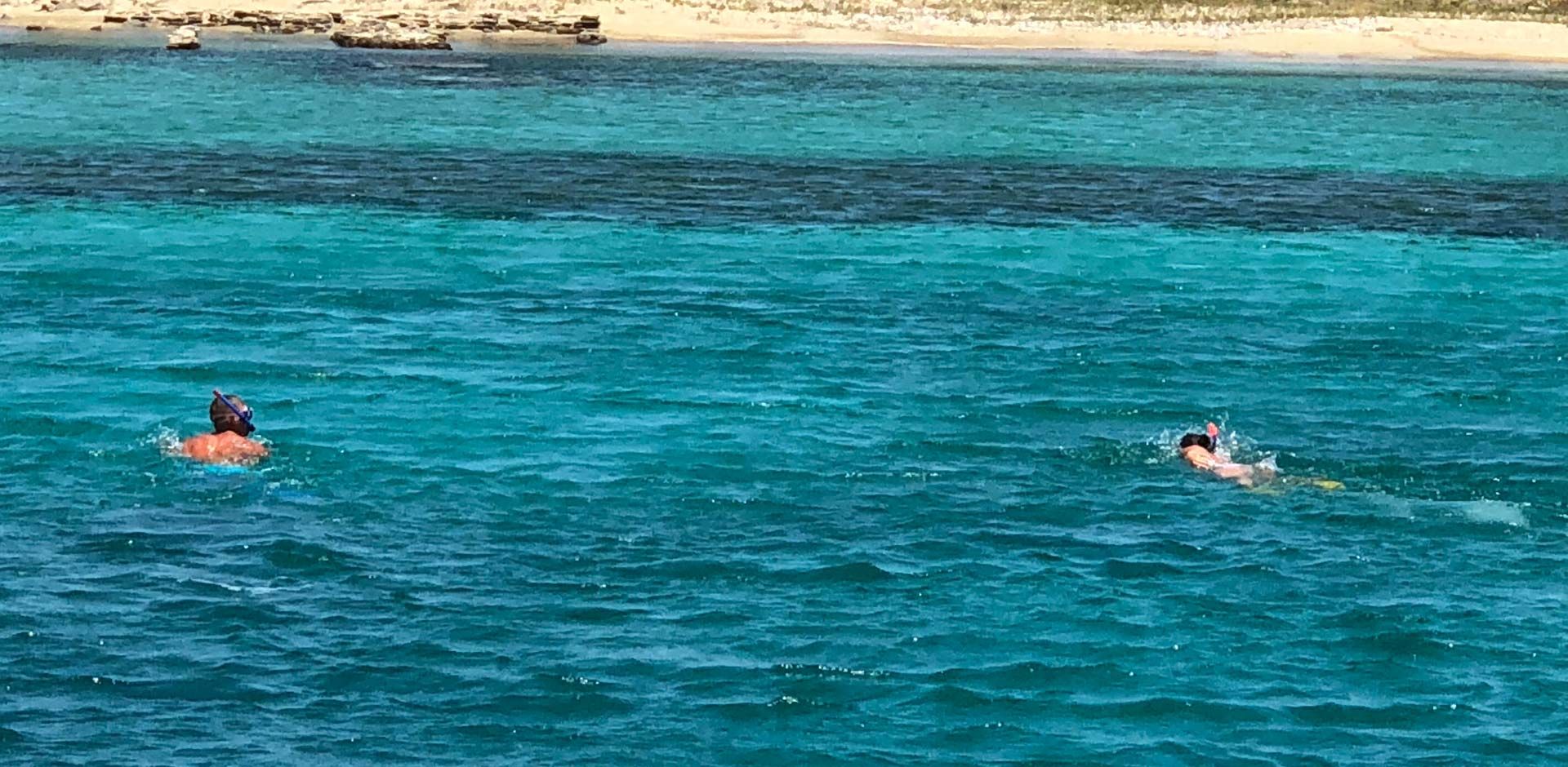 Swim & snorkel in the turquoise waters of Rhenia islet surrounded only by nature’s beauty