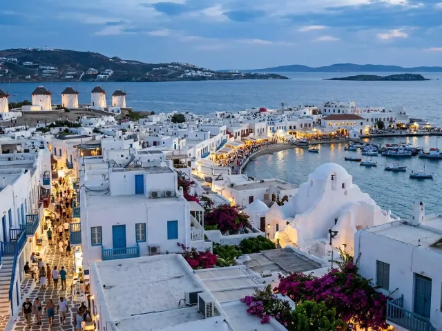 Known for its cosmopolitan soul and cinematic scenery, Mykonos seamlessly blends traditional Cycladic charm, simplicity with modern luxury. Whitewashed alleys and blue-domed chapels sit alongside high-end boutiques, while the rhythmic "Meltemi" breeze fills the sails of travelers exploring its sparkling coastline. From the iconic Windmills and picturesque Little Venice to hidden coves accessible only by sea, the island remains a premier destination that inspires both adventure and elegance.